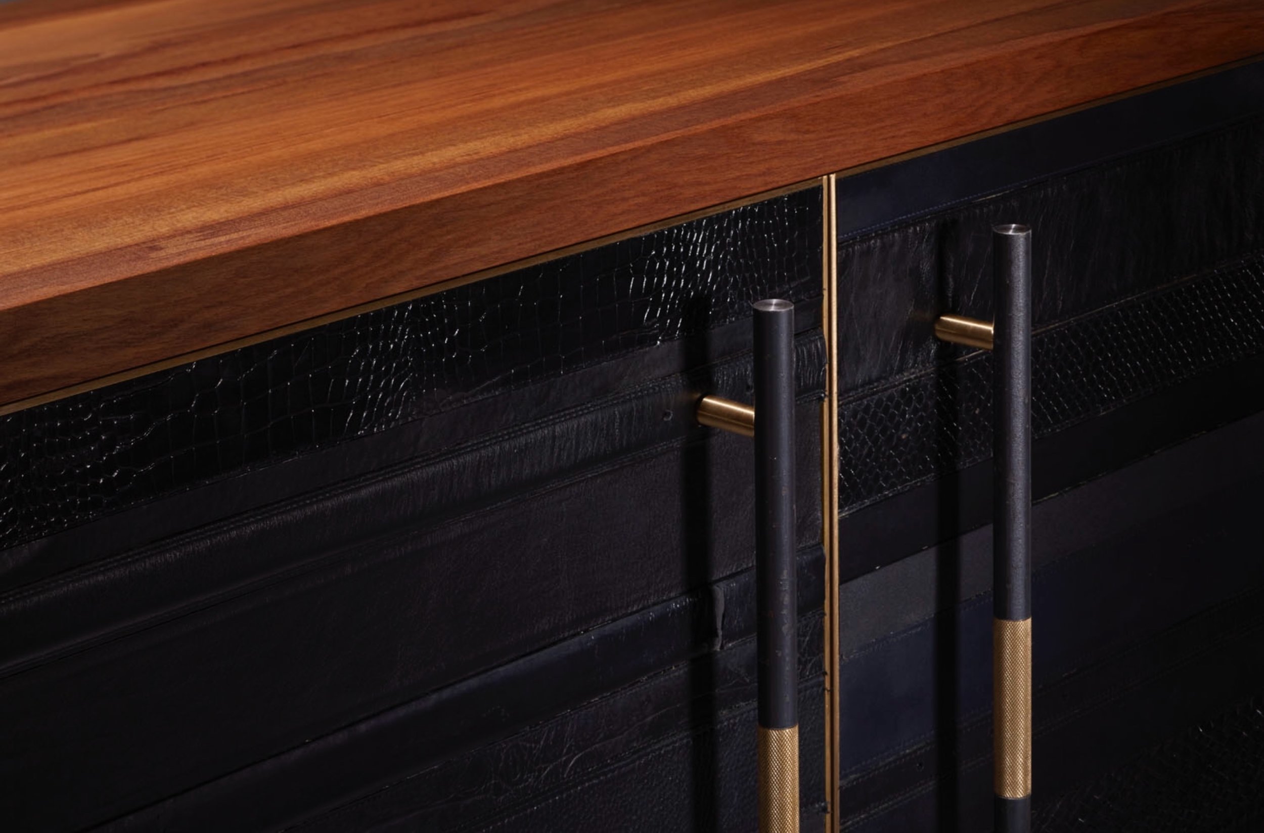 The humble leather belt is the hero in this collection. Working with the talented makers at Sam James Furniture, the Metalroom and PLN Group, we have taken the stories of individual belts and woven them into a new tale of adventure. In sideboards, armoire, benches and more, the journey’s these belts once took are on display, rich in texture, deep in history. Combined with sustainably sourced rimu, polished brass, and blackened steel, the leather provides a tactile warmth and a luxurious finish to this timeless collection. This takes upcycling to new, elegant, levels. But this is our commitment to sustainability, seeking to create beauty in a way that walks lightly on the earth, and that you can enjoy for years to come.